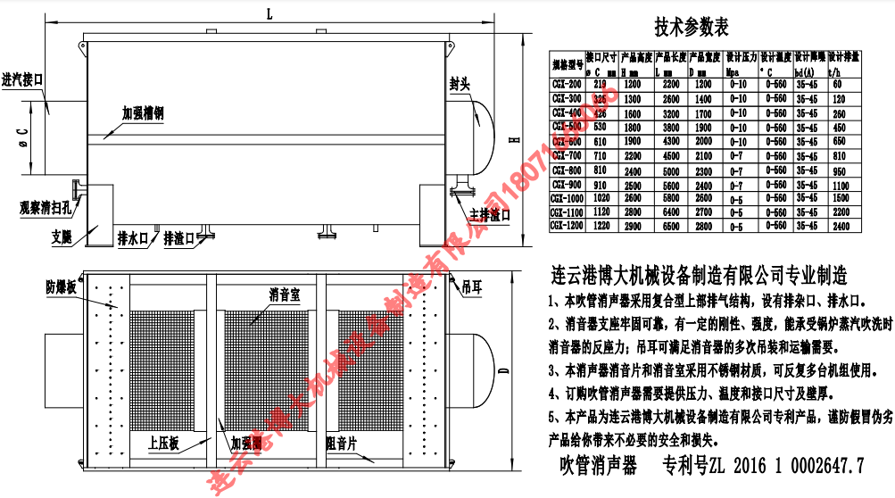 (2) 本吹管消音器能承受各種工業(yè)垃圾的猛烈撞擊,并順利排出,在惡劣的工作條 件下也能正常工作,且不影響吹管的蒸汽流量;